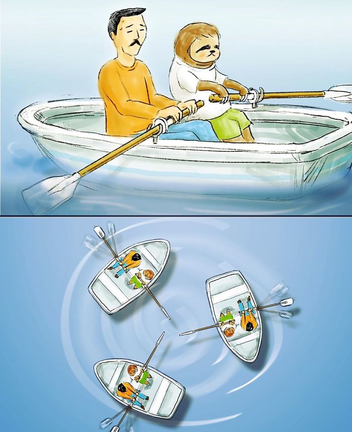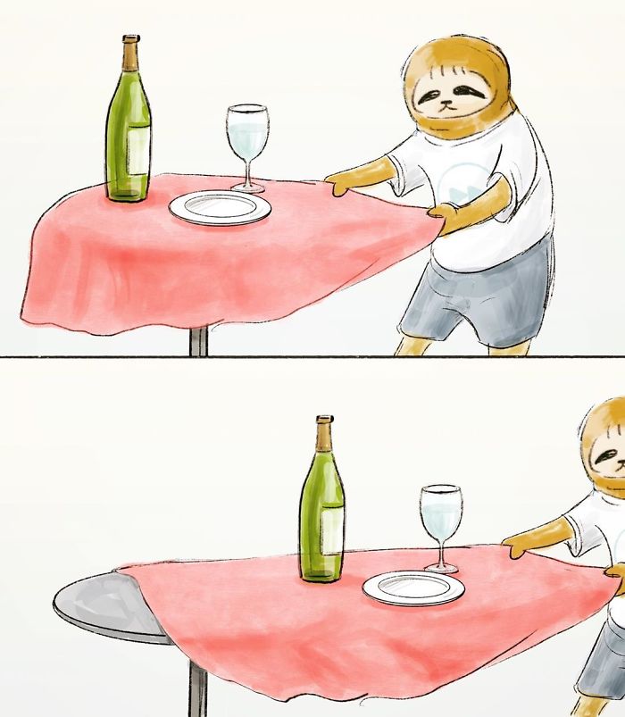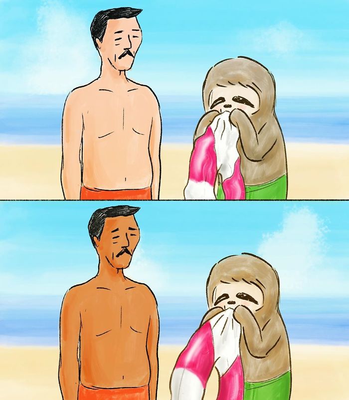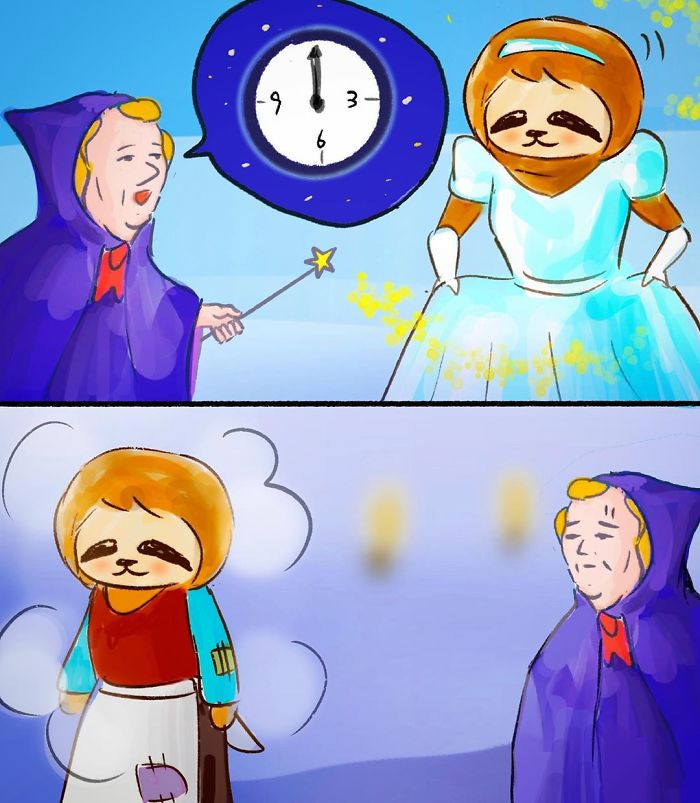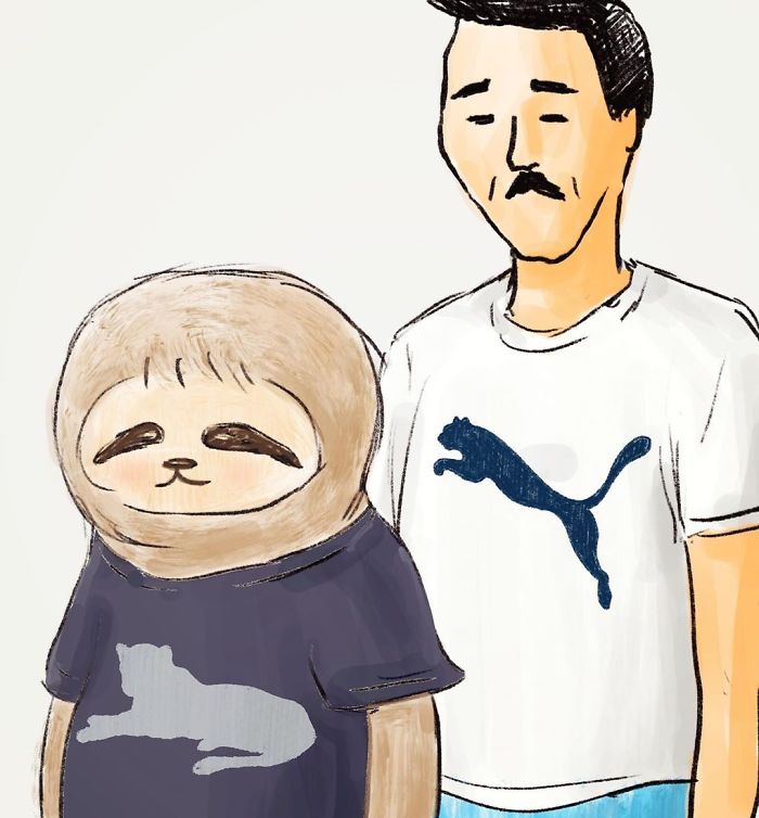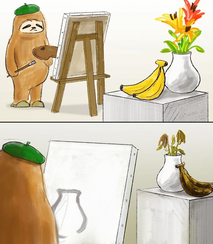He told Bored Panda: ”Using the sloth as the main character, I am interested in how to visualize the concept of “time” in a single piece of art. Sloths are very cute, but more than that, I am strongly attached to the fact how it gave me new ideas to express. In real life, I have a cat and that’s my favorite animal,”