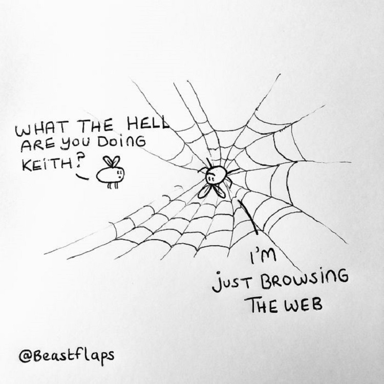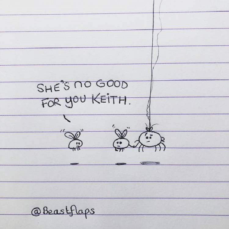 “If people enjoy your work or dislike it, then that’s all it is. I see many artists post photos of themselves holding their artwork and wonder how they could be so brave. I prefer to stand in the background, way behind a web of spider doodles.”
