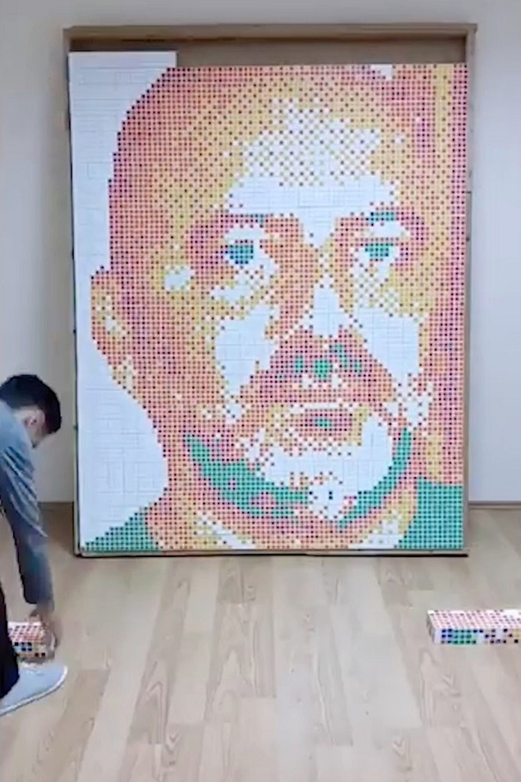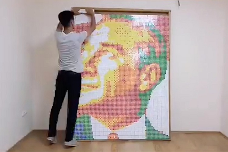 Despite using only the colors available in a Rubik’s Cube, namely, red, blue, orange, green, yellow, and white, Hazrat can still create stunning portraits that have a depth and clarity that is amazing considering what they are made of. Among the portraits he has made are that of Stephen Hawking and Victoria Beckham, with each portrait being made up of roughly 500 miniature cubes.