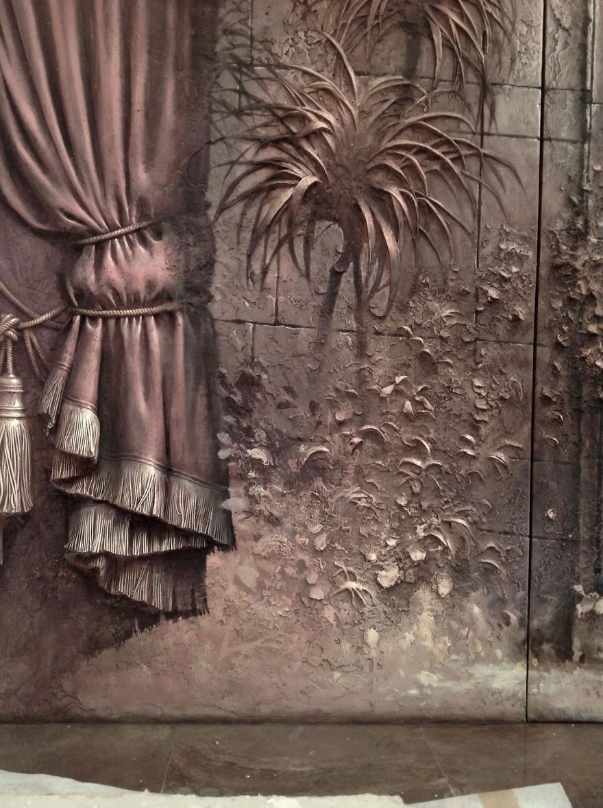 “I use a different tool depending on the artistic problem: knives, cutters, chisels, palette knives, he told Bored Panda. “The choice of the material is also determined by the task, for the interior I work with gypsum mixtures, this is the old material that has proved itself for centuries. If there is a need to do work from bronze, granite, marble, steel and so on, then I could also do that.”