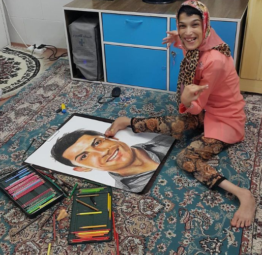 #13 Disabled Fatemeh Hamami Uses Her Feet to Draw a Portrait of Cristiano Ronaldo