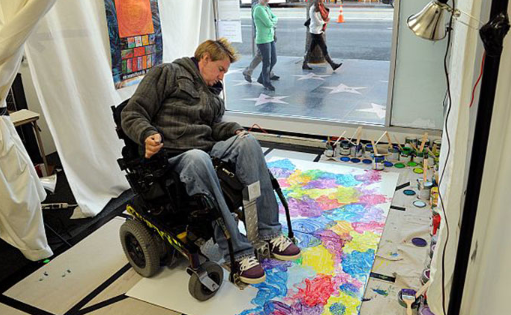 #16 Tommy Hollenstei Uses His Wheelchair to Paint