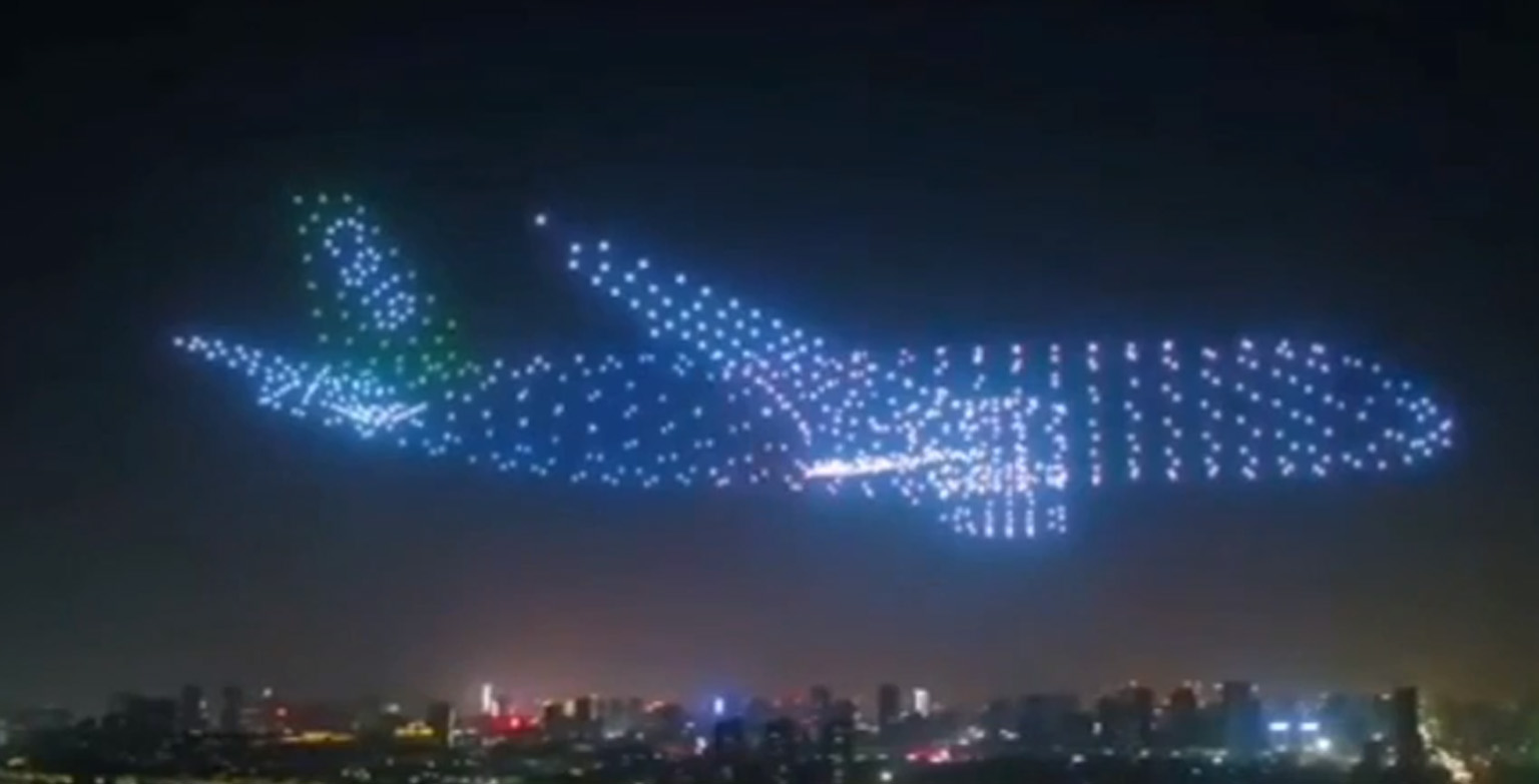 The aircraft we are talking about here is made of 800 drones and was floating through the night sky in China.