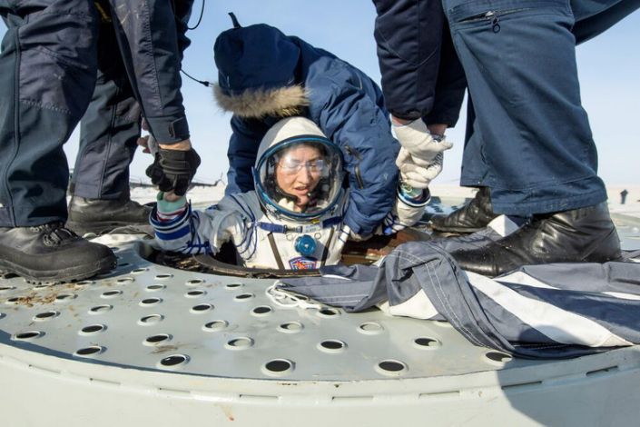 On Tuesday, Koch returned to earth along with European Space Agency astronaut Luca Parmitano and Russian cosmonaut Alexander Skvortsov. The Soyuz spacecraft carrying the astronauts landed near Zhezkazgan, Kazakhstan at 4:12 a.m. ET.