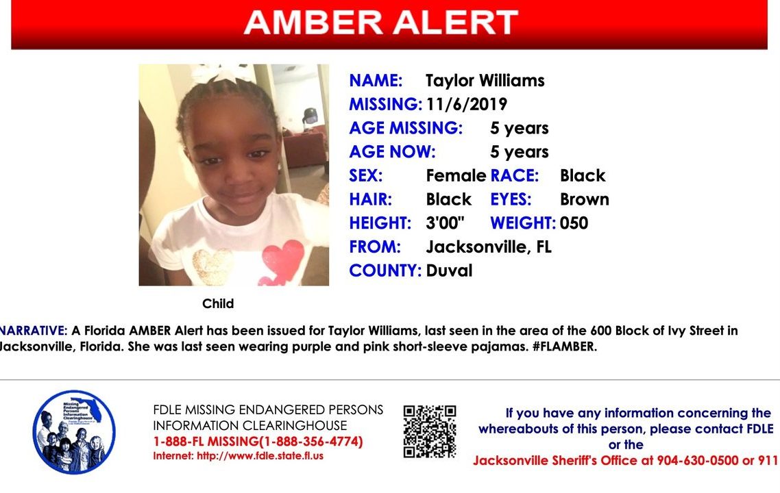 Taylor Rose Williams’ parents are living their worst nightmare as their 5 years old baby girl went missing. Her mother had reported her missing from her home in Jacksonville on Wednesday.