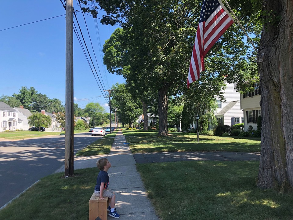 According to his parents, Finn loves a particular American flag which is attached to a large tree that hangs near the sidewalk where he steps.