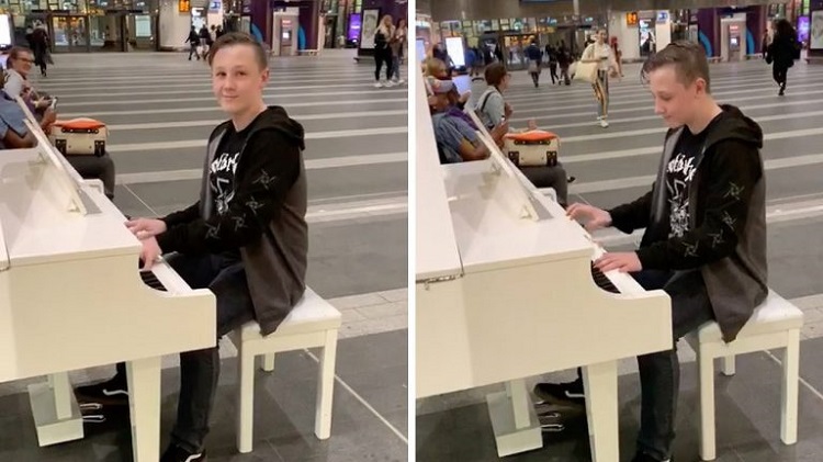 The boy, from Sutton Coldfield, West Mids, was with his family traveling to Birmingham News Street from London. When they arrived, Alfie went straight to the piano to play the song.