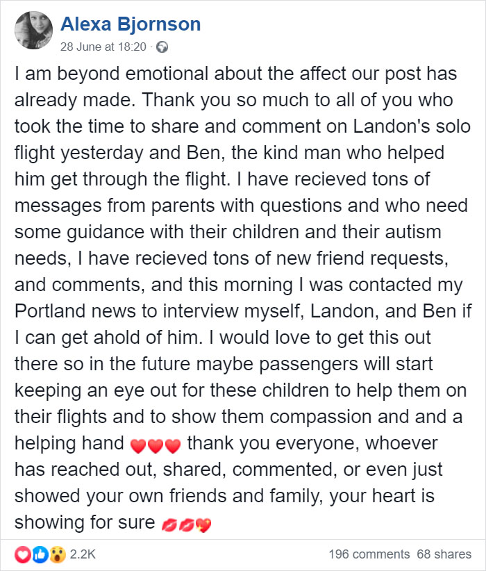 Alexa is glad that she didn’t stop her child from experiencing what he underwent in the flight. She is now calling out for other parents to do what’s best for their kids.