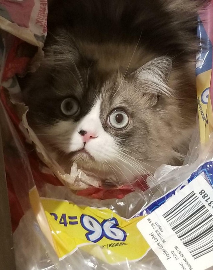 - No matter how small the space is, if your cat wants, it will crawl into it and scare the hell out of you.