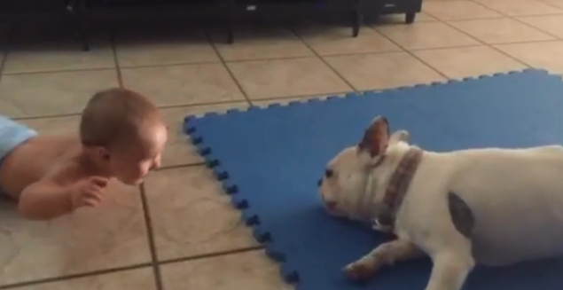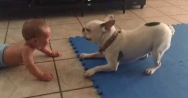 Here is one such video of friendship between a toddler who is just months old and this French Bulldog.
