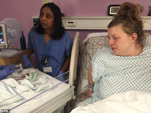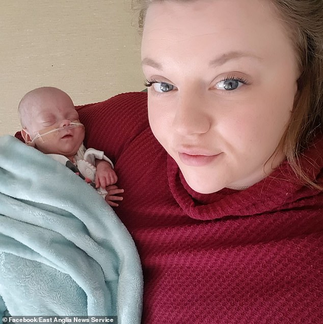Miss Menear from Norwich was rushed to a hospital when she was 21 weeks pregnant. On December 9, she gave birth to her daughter Lilly who weighed 1lb 2oz (511g).