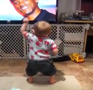 The cheeky little baby is showing off his best dance moves to the camera, and we could not stop saying that he is really natural when it comes to dancing.