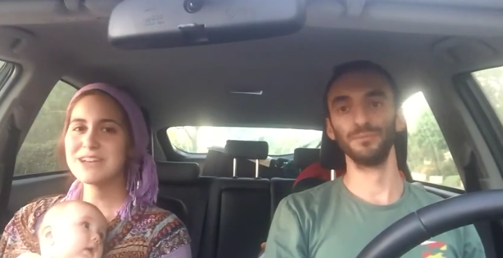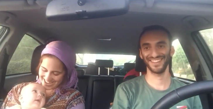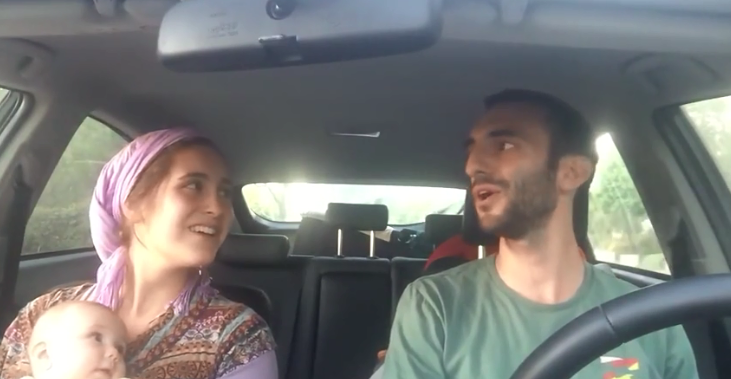 At first, the mother who is holding the baby starts singing as she takes the note. She starts singing Matisyahu’s “One Day” and then the father joins in.