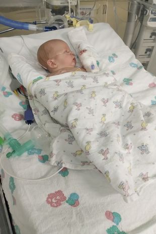 The 7-week-old baby spent more than 48 hours in ICU, with doctors discussing ventilating and intubating him.