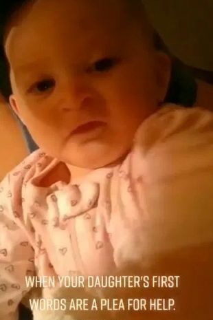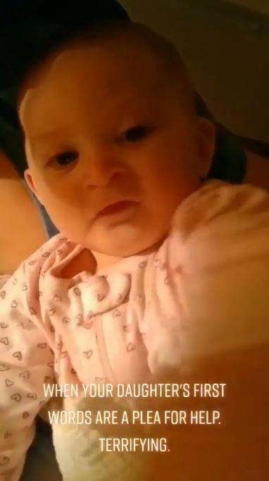 The mom wrote in the caption: “When your daughter’s first words are a plea for help.”