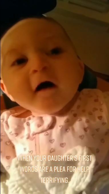 In the terrifying video, her baby can be seen making cute baby noises before saying: “Help me mom.”