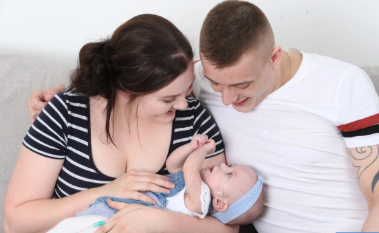 After two life-saving operations and several scares, she finally left the hospital and is now smiling at home with her loving parents.