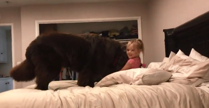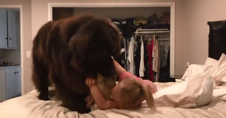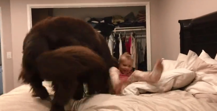Samson is her beloved Newfoundland dog and she is equally loved by him in every sense ever since she was brought home from the hospital.