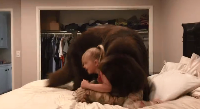 While the little girl Sierra keeps sitting, her best friend Samson who is all set to attack her cunningly goes in circles around her. He is being smart as he goes around her but the baby girl is also smart enough because she takes her chance at winning.