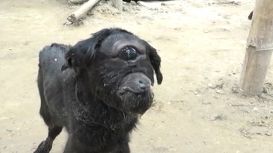 The baby goat suffers from a condition called cyclopia. It occurs when the two hemispheres of the brain do not separate and cause the defect.