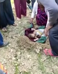 In a heartbreaking video, shocked residents and police officers are seen rescuing the baby whose body was covered in dirt and soil from top to bottom.