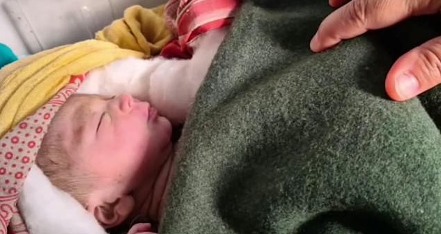 After the successful rescue operation, rescuers swaddled the tot in cloth for warmth and protection.