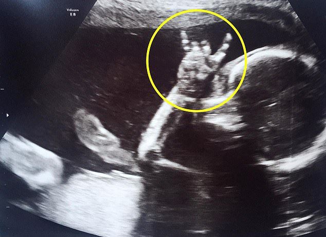 The baby who expressed her love for music before she was even born made the hand gesture while her mother was getting her 24-week scan.