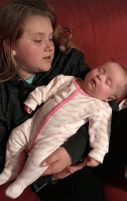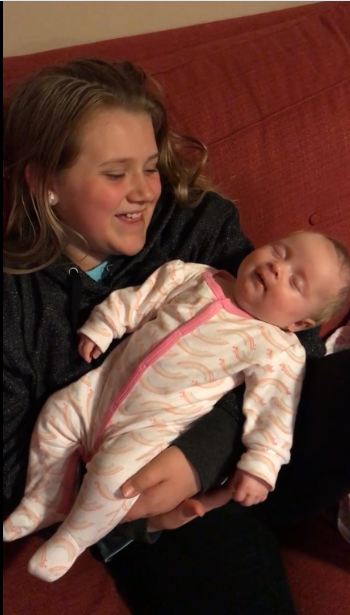 The 9 years old Allie and the 7 weeks old baby Ashlyn.