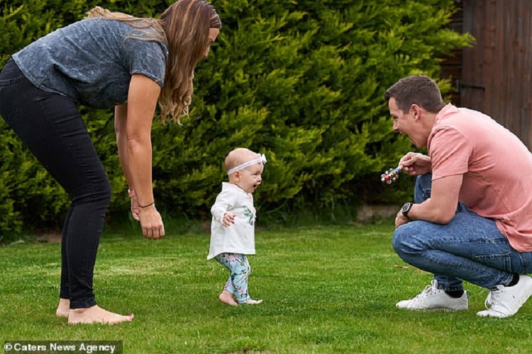 “Freya was able to stand up whilst holding on to our fingers for balance, by the time she was four-months-old,” explained Grace. “We could tell she was desperate to walk from then but it wasn’t until she was six-months-old that it actually happened.”