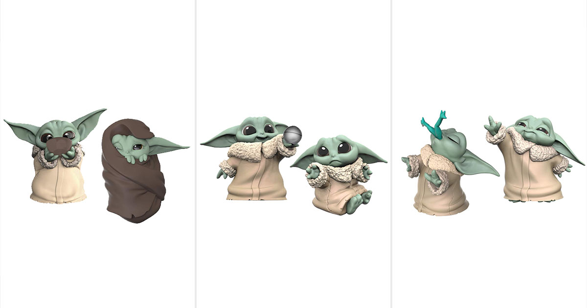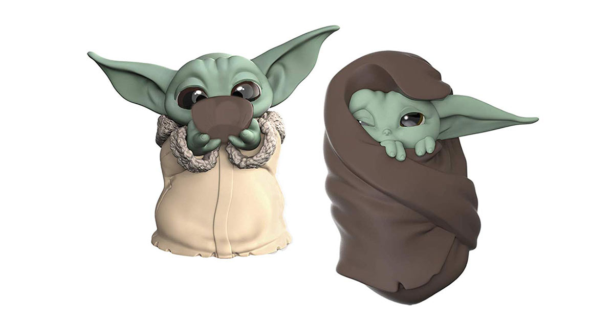 Buy It! The Mandalorian “Baby Yoda” Sipping Soup, Blanket-Wrapped Figure, $15.99; amazon.com; The Mandalorian “Baby Yoda” Don’t Leave, Ball Toy Figure, $15.99; amazon.com; The Mandalorian “Baby Yoda” Froggy Snack, Force Moment Figure, $15.99; amazon.com