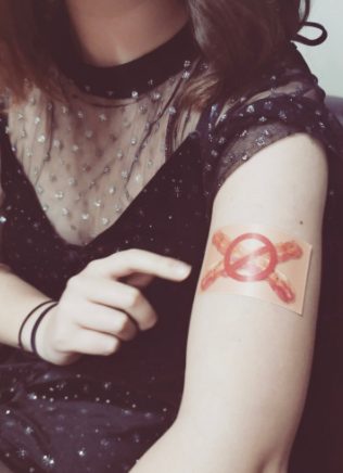 She slammed the firs patch on her arms, and it looked like plaster, but it didn’t actually work as she was still feeling the sensations of eating meat.