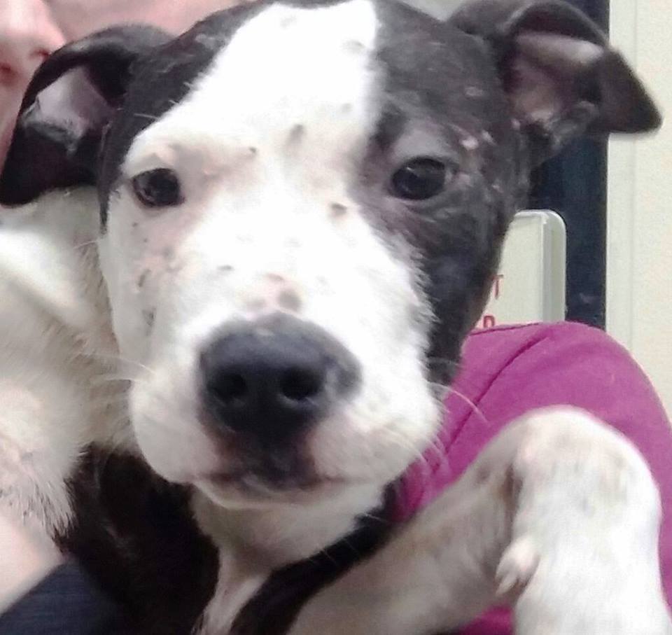 ‘Mr. Riley is slowly recovering. It has been a little over a month and he is looking adorably good these days. He is still in need of medical care, but he thrives to survive is inspirational to us all. According to his foster mom, he loves to snuggle. He is almost fully housetrained and knows the sit & come commands. Mr. Riley enjoys playing outside with the other dogs he stays with.’
