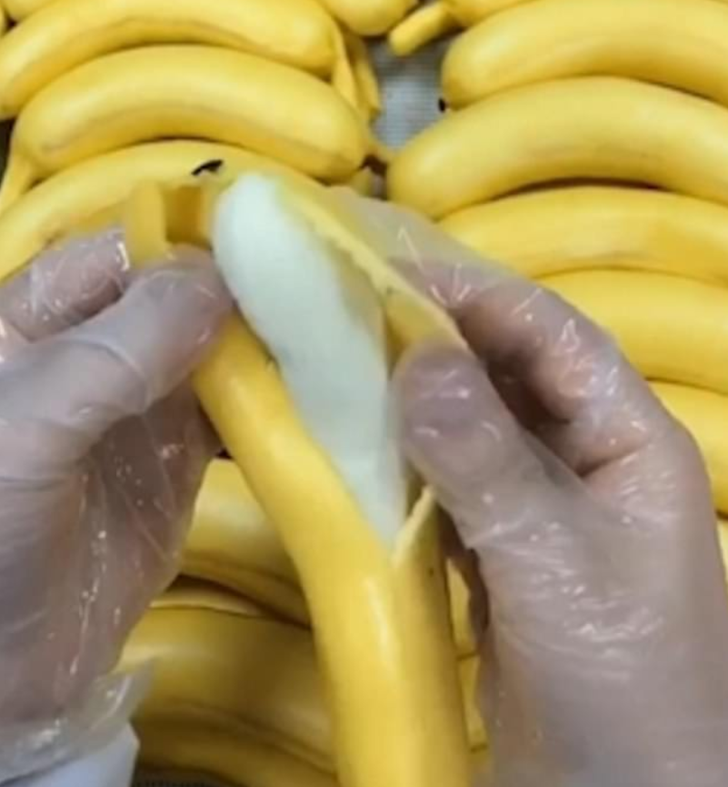 The baker made a banana bun with a skin that can be easily peeled off and a huge watermelon which has exact same colors similar to the fruit.