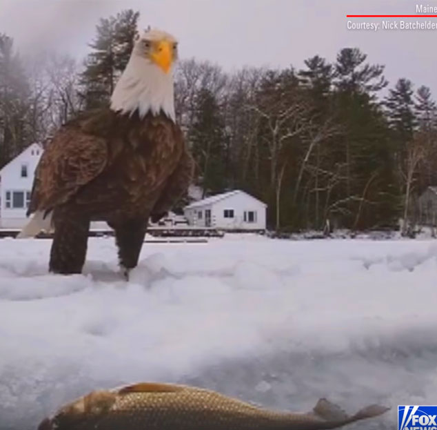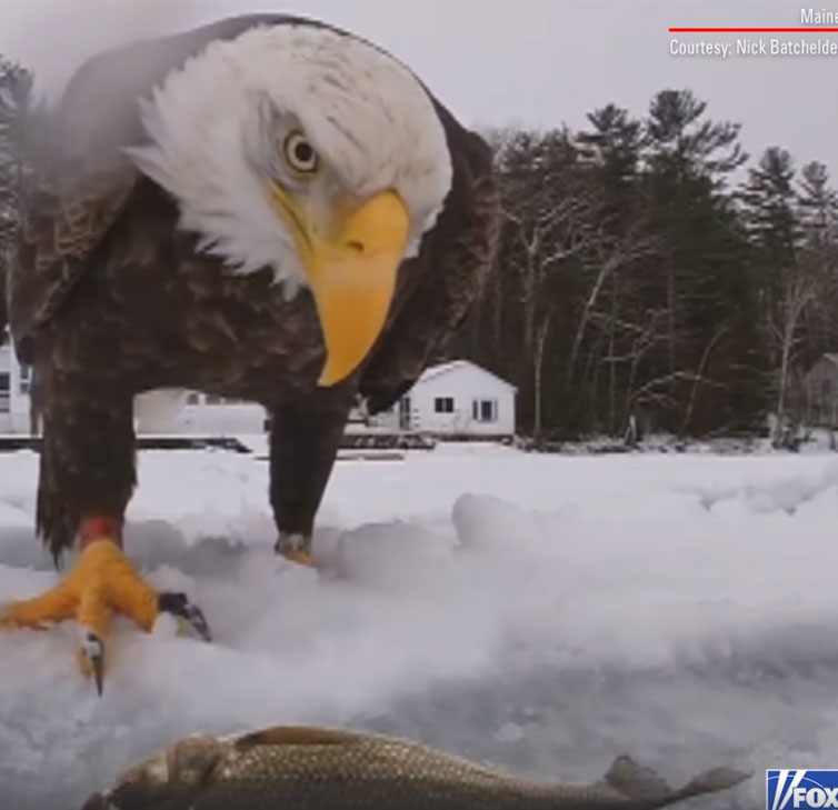 When Nicholas Batchelder was ice fishing with his friends at Little Sebago Lake in Windham, Maine, a bald eagle snatched his catch.