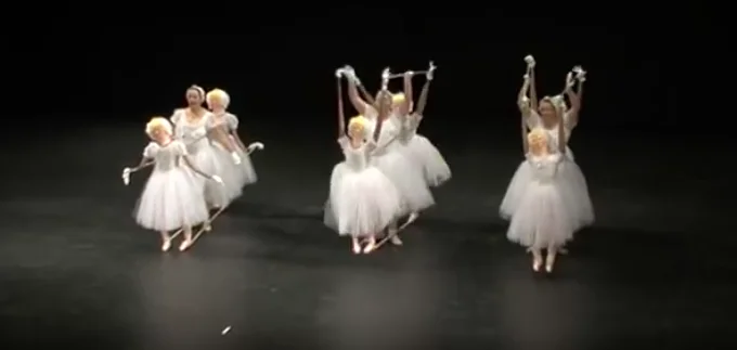 The ballerinas begin to do their routine in a straight line and they’re immediately amusing.