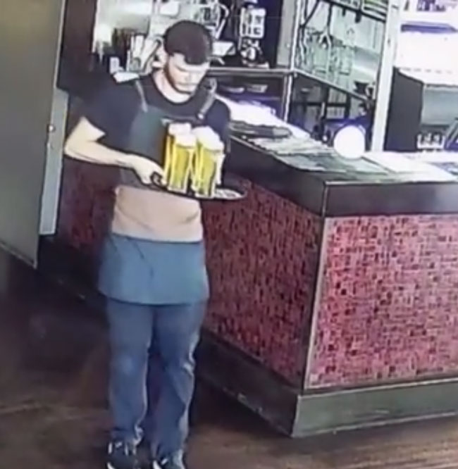 Micah Thompson – a bartender who works at Celsius Gastrobar in Auckland, New Zealand – couldn’t hold the tray of beers and dropped it in front of the customers.