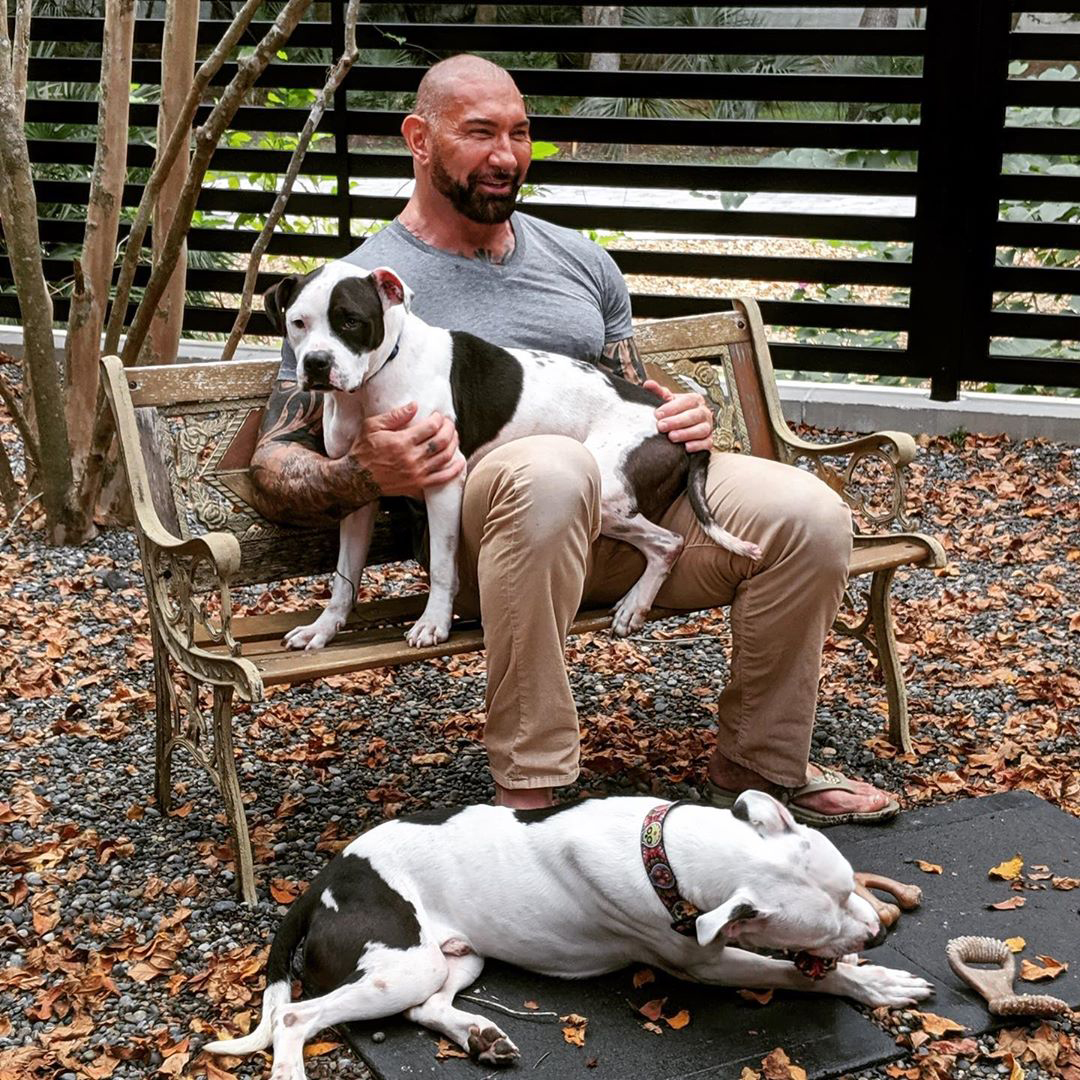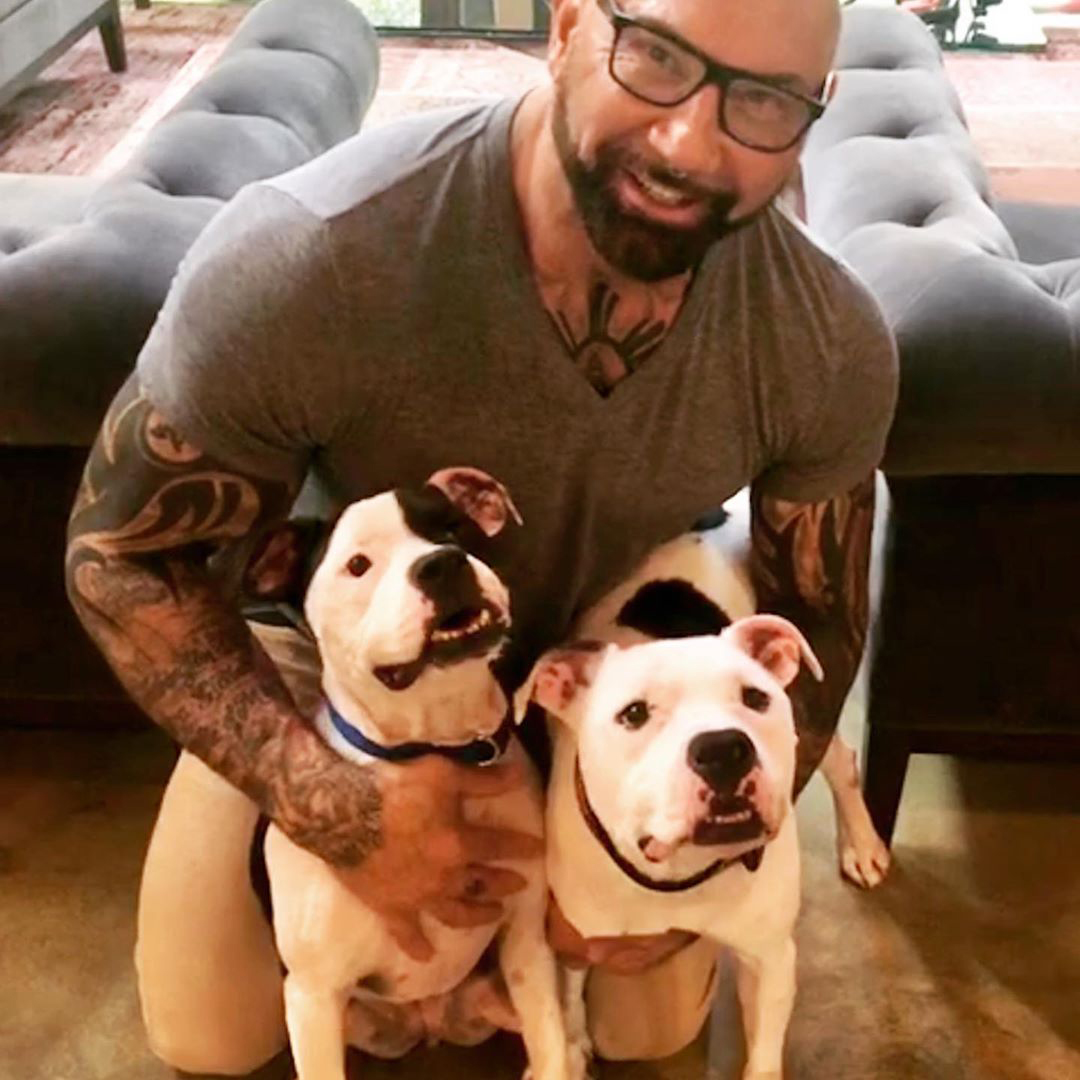 The Guardians of the Galaxy star Dave Bautista introduced his two adopted pit bulls, both of which are undoubtedly the cutest fur babies out there.