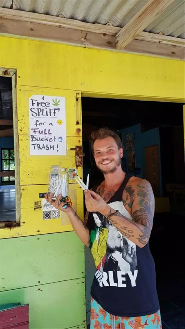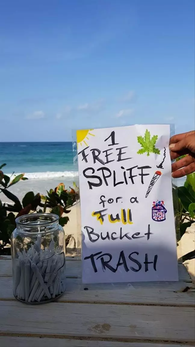 “I often saw some pics where people offered free coffee for a bucket of trash. My girlfriend made a joke, she said, ‘In Jamaica we should offer free spliffs.’”