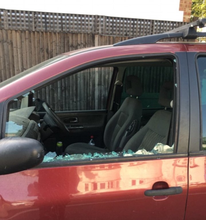 The group surrounded the car parked at Frensham Ponds, Surrey. Scared that the dog might die inside, they decided to smash the side window with a hammer and freed the dog.
