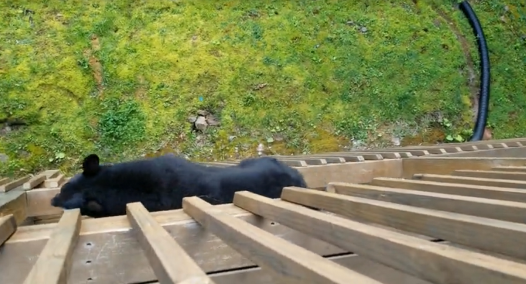 Recently, an owner who was residing in the beautiful forest was disturbed by continuous sound from his backyard. The owners have had many encounters with the wild animals, but this time they had a visit from one of the scariest animal: Bear.