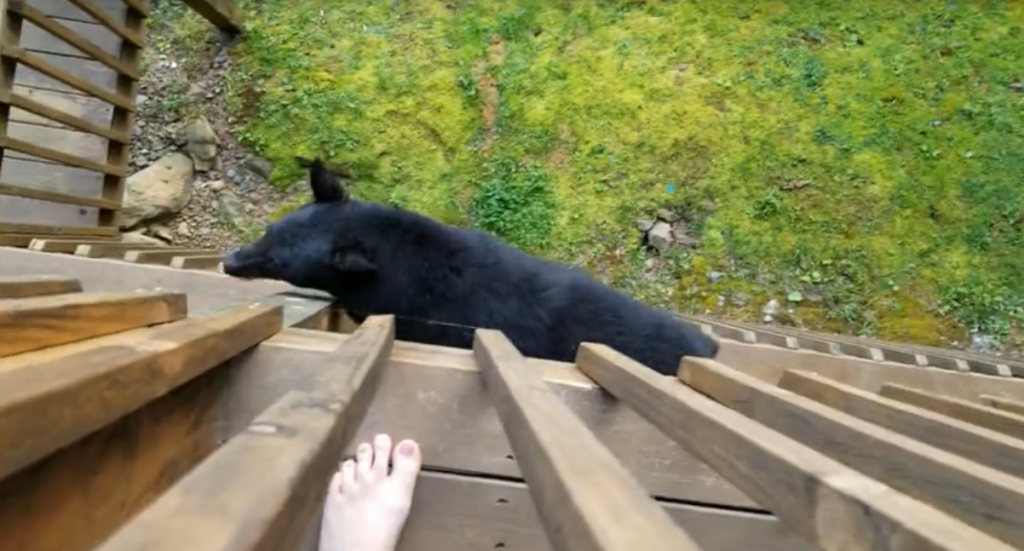 The filmer quickly went behind the closed door. Though the whole situation was scary, but thankfully the filmer was quick enough to get behind the safe space where the bear won’t be able to reach him.