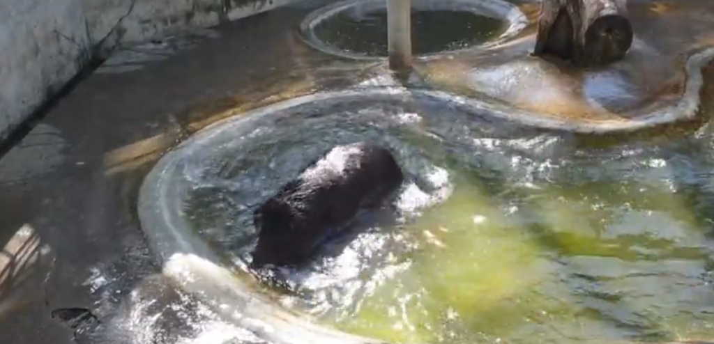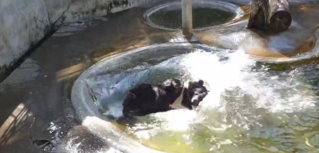 It was an adorable moment as the bear was first quietly looking up in the sky, and then he slowly decided to fall back in the pool. Admittedly, the pool is the best way to escape this hot soaring weather.