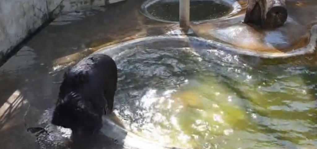 As it was a scorching day, even the bear felt the need to cool off his body a little. The black bear is known as James, and he was sitting at the edge of a pool and suddenly decided to do a back flop to cool off a little.