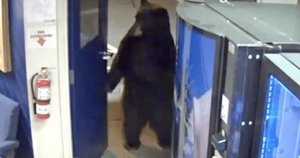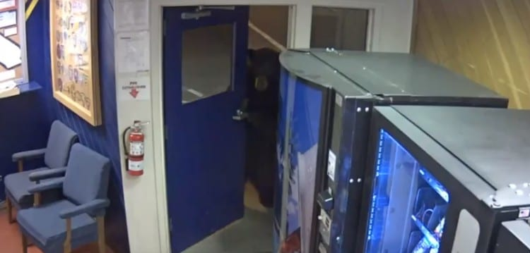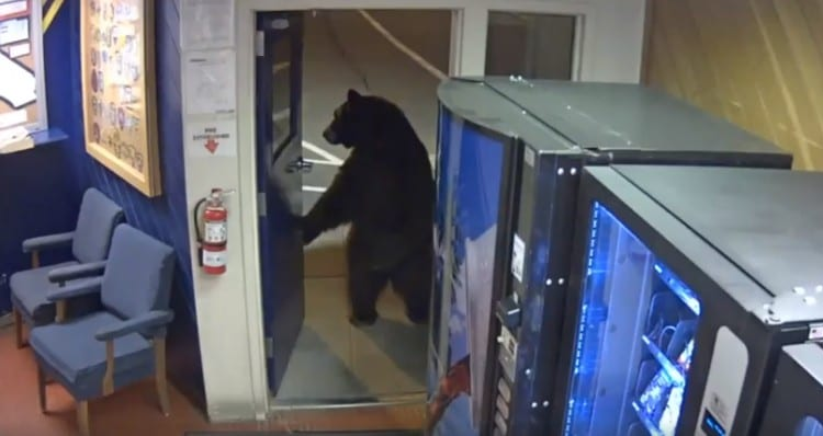 The staff at the Highway Patrol Department in Truckee, California, were left stunned when they saw the bear standing on its two feet and walking in the station by turning the doorknob.
