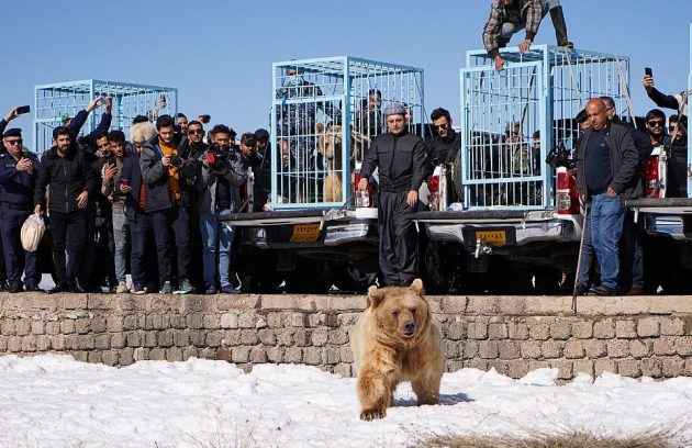The Syrian bears were rescued from captivity and were being released to their new homes in Gara mountains in Iraq when they immediately charged towards the spectators and their rescuers.