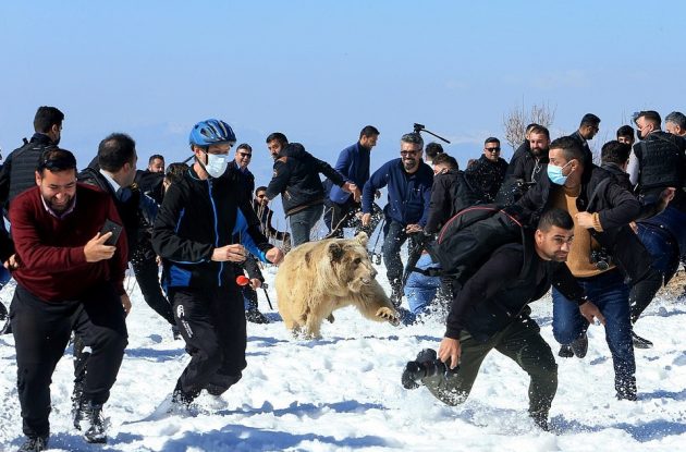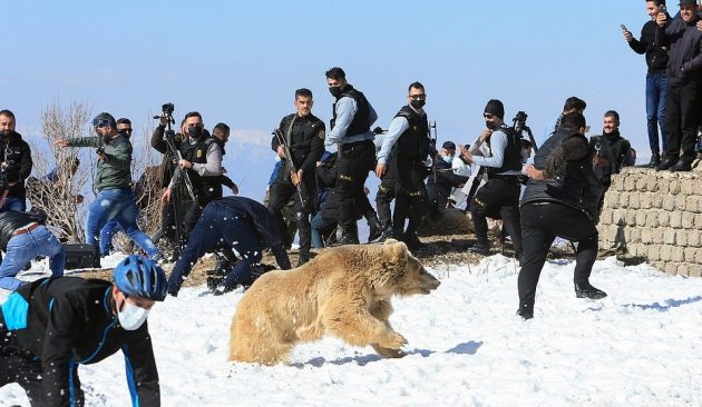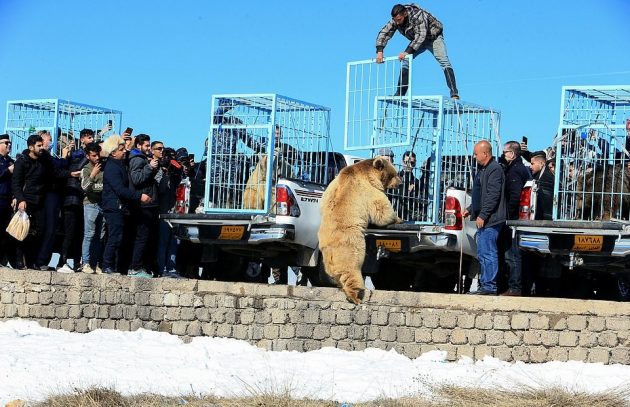 The bears in steel cages were surrounded by a huge crowd of spectators, armed officers, and reporters. But as soon as they took their first steps to their new home, they turned on the rescuers and onlookers.