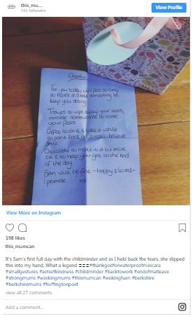 But I have been lucky enough to find just the right nanny for my son. She understands how difficult it is for a mother and that is why she gave a beautiful goodbye for my first day.”