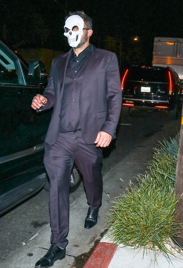 Fortunately, Affleck, who donned a skeleton mask for the party, was able to hold onto a nearby car and stay on two feet.