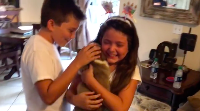 Little Natalia chose to open the gift box all by herself with her little brother standing beside her. While unpacking it she could see something moving inside and by then it already got evinced to her that it was nothing but an adorably cute puppy.