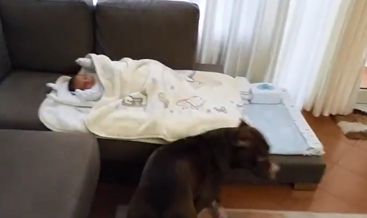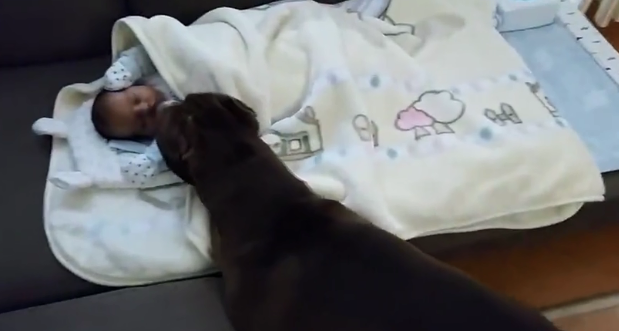 Diesel is an adorable dog and look at the way he treats the newborn baby. If I ever have a dog around my child, I will always want it to be like Diesel. Cute, adorable, gentle, and such a good buy.